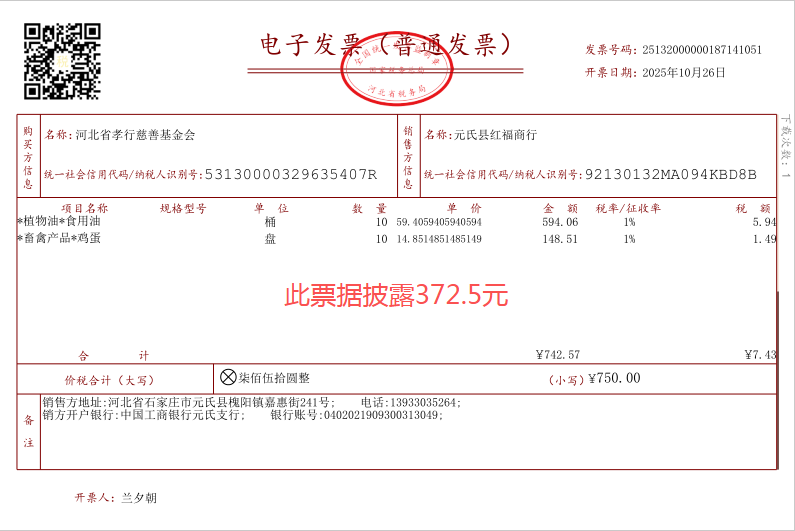 2、孝老敬亲饺子宴活动支出10938.17元,资金由顺平县龙昌塑料有限责任公司定向捐赠。
